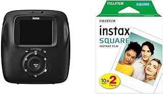 Fujifilm Instax Square SQ20 Noir Appareil photo instantané Noir/Beige & Film INSTAX Square WW (10X2 PK) Kit de 2 Films 10 Vues Blanc