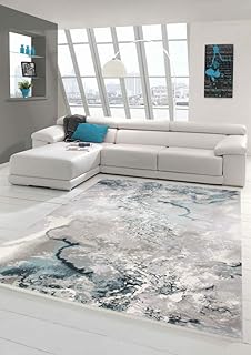 Merinos Tapis en Laine Tapis Contemporain Tapis de marbre Abstrait en Gris Bleu crème Größe 120x170 cm