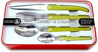 Laguiole Evolution® - Ménagère 16 pièces Design Acidulé Couleur Vert Citron - Acier INOX et ABS - Couverts de Table pour 4 Personnes - Présentation Coffret Cadeau