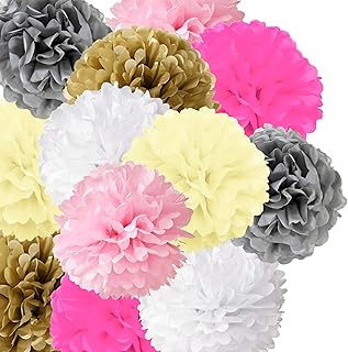 Anokay Set Pompon Papier de Soie, Décoration Mariage Baptême, Accessoire Fête Anniversaire Party Soirée (12pcs)