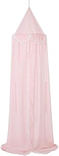 Namgiy Ciel de Lit Dôme pour Enfant avec Pompon, Moustiquaire pour Chambre en Coton, Tente de Jeux/Lecture Décoration Lit à Baldaquin pour Bébé, Rose