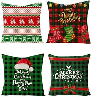 Sunshine smile 4pcs Christmas Pillow Covers,Coussin taie d'oreiller noël,Housse de Coussin Noel,Housse de Coussin Decoration