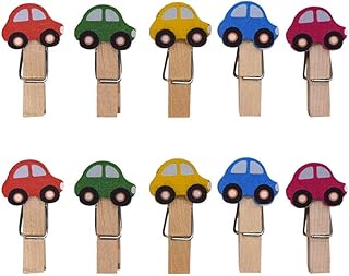 SENDILI Pinces à Linge Bois - 3.5 cm Mini Bois Dessin Animé Clip pour Papier Photo Chambre des Enfants Anniversaire Fête Craft DIY Décor Pinces, Voiture
