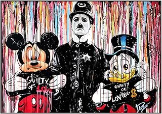Oeuvre d'art pour la décoration murale - Pop art moderne art abstrait Graffiti Mickey Mouse et Donald Duck et Chaplin portrait affiche impressions sur toile - Sans cadre,70×100cm