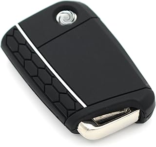 VB Coque de protection en silicone pour clé de voiture à 3 boutons Noir et blanc
