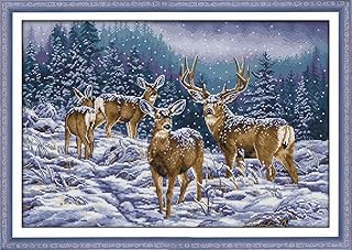 CaptainCrafts Kit de broderie au point de croix pré-imprimé pour débutants enfants et adultes – Cerf d'hiver (estampillé 14 ct)