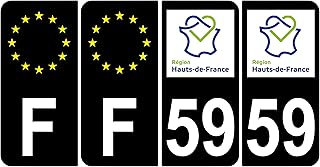 Supstick 4 Stickers Autocollants Plaques Immatriculation Auto Dept 59 Hauts de France Noir Angles Arrondis