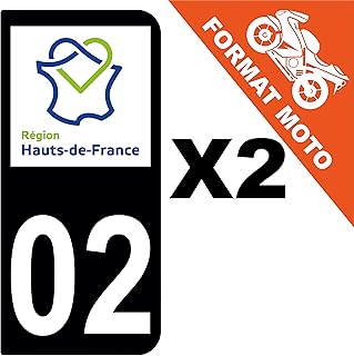Supstick 2 Stickers Autocollants Plaques Immatriculation Moto Dept 02 Hauts de France Noir 2 Angles Arrondis