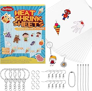Auihiay Le kit de 157 pièces en plastique rétractable comprend 20 papier rétractable, 4 papier calque, une perforatrice, des crayons et des accessoires de porte-clés pour le bricolage