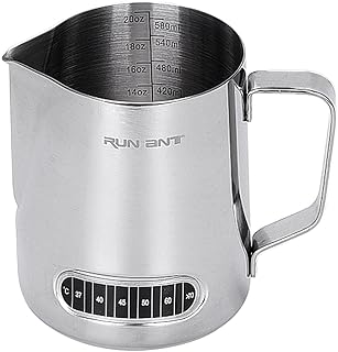 Pichet à lait, RUN ANT de lait en acier inoxydable pichet à mousse avec thermomètre pour café, cappuccino, espresso, latte art (600ml/20oz)
