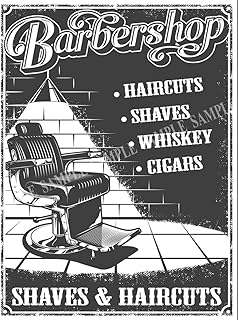 Plaque en métal style rétro pour barbiers rasages et coiffures - 3 tailles au choix (200 x 150 mm)