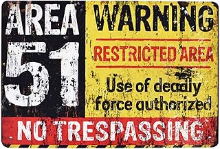Flytime Plaque en métal vintage Area 51 No Trespassing, style militaire, style rétro, pour café, bar, décoration murale, idée cadeau, 30,5 x 20,3 cm
